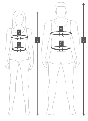 | SIZE | B {Height} cm | A {Chest} EU |