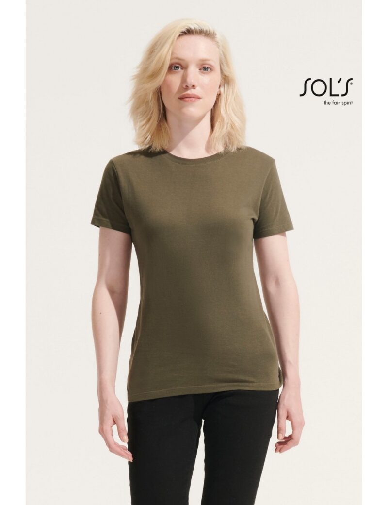 Sol’s γυναικείο t-shirt κυλινδρικό με κοντά μανίκια, σε στενή γραμμή με πλαϊνές ραφές. Φακαρόλα στο λαιμό και ριπ στον γιακά. BackToSchool Campaign